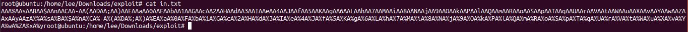 Starting program: /home/lee/Downloads/exploit/vuln < in.txt